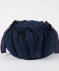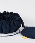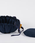 Sac rond et son chapeau en toile 100% Coton bleu marine.