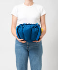 Bolso redondo y su sombrero en lona 100% algodón color azul Klein.