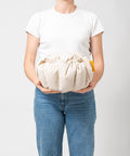 Bolso redondo y su sombrero en lona 100% algodón color crudo.