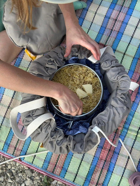 Conçu pour être nomade, le sac thermique accompagne les randonnées, les pique-niques, les sorties en famille, ou les déplacements professionnels, en voiture, van, train ou bateau. Léger, souple et résistant, il maintient vos repas au chaud ou au frais pendant plusieurs heures. Un équipement durable pour cuisiner autrement et maximiser les fonctionnalités de ce qu'on emporte. Le sac thermique sera aussi un excellent coussin d'appoint !